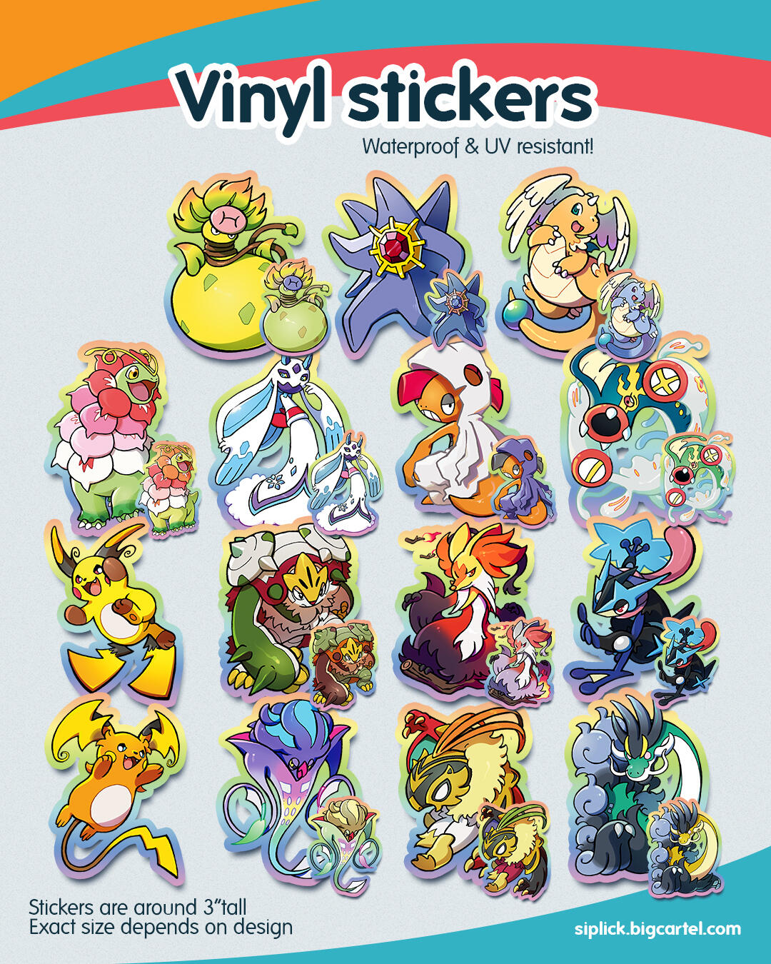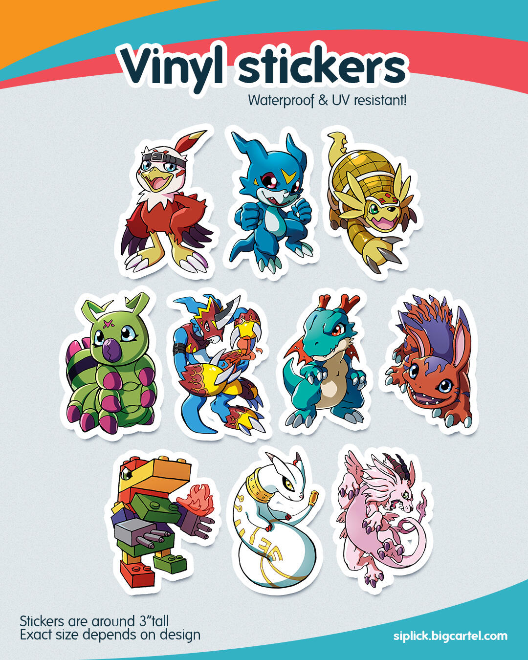 I make stickers, prints, charms, standees and more types of merch using my art.